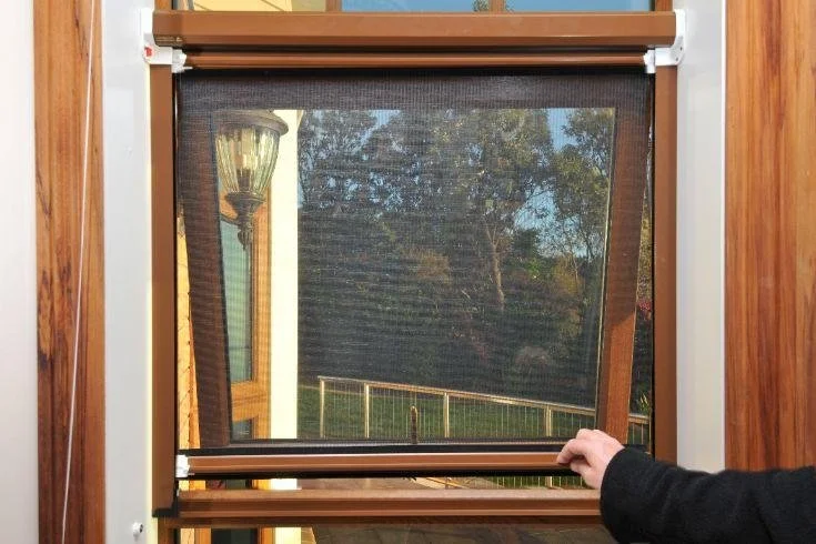 A discreet window screen system that retracts away neatly when not in use.